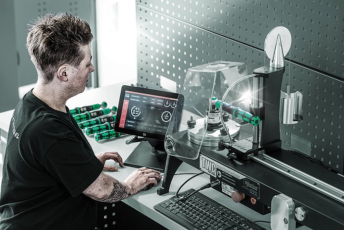 Wera Werkzeuge GmbH ofrece servicios integrales para herramientas de par de apriete con su propio laboratorio de calibración en Wuppertal. El servicio Wera Torque incluye calibración, ajuste, reparación y certificación para garantizar la máxima precisión y fiabilidad.