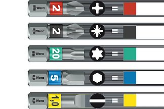 Nuevo localizador de herramientas „Take it easy“ de Wera / Precintos de color asignan las puntas claramente a un determinado perfil / Un estampado…