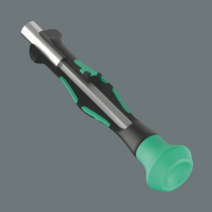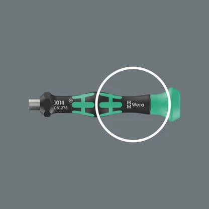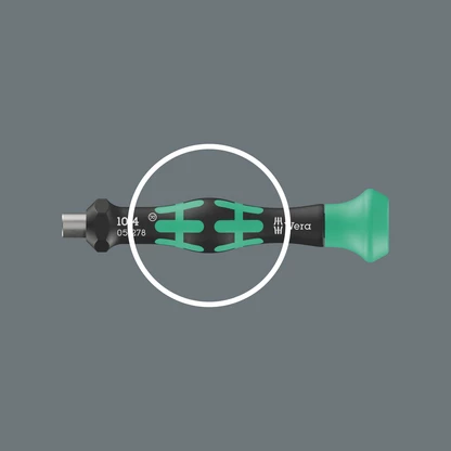 El destornillador Kraftform Micro con sus tres zonas que están ubicadas de una forma muy especial, cumple de manera perfecta con estas exigencias. El caperuzón de giro libre en el cual se puede apoyar la mano, complementa las ventajas de esta herramienta de forma ideal.
