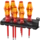 Juego de destornilladores de 6 piezas con destornilladores aislados, probados pieza por pieza según IEC 60900. La prueba individual se realiza en un baño de agua a 10.000 V para poder garantizar un trabajo seguro a una tensión permitida de 1.000 V. El mango es tipo Kraftform Plus para un trabajo agradable y ergonómico sin que se produzcan ampollas o callosidades. Las zonas duras de agarre permiten una gran velocidad de trabajo mientras que las zonas blandas de agarre garantizan la transmisión de altos pares de giro.En parte llevan Lasertip: la punta se aferra fuertemente a la cabeza del tornillo y evita así que el útil involuntariamente se desprenda del tornillo por deslizamiento. Con sistema de búsqueda de herramienta Take it easy: marcas de color según el perfil y sellos con el tamaño. El sistema de protección contra el rodamiento evita las molestias que conlleva el perder la herramienta que se rueda en el puesto de trabajo. Incluye 1 bandeja para depositar los útiles.