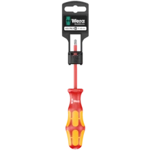 Destornillador VDE de Wera con mango multicomponente Kraftform Plus para un trabajo rápido y ergonómico: las zonas duras de agarre permiten una gran velocidad de trabajo mientras que las zonas blandas de agarre garantizan la transmisión de altos pares de giro. Perfil combinado ranura y Phillips, ante todo para aplicaciones en bornes en línea, armarios de fusibles, conmutadores, relés. Han sido probados pieza por pieza en un baño de agua a 10.000 V para poder garantizar un trabajo seguro bajo la tensión permitida de 1.000 V. El sistema de protección contra el rodamiento mediante hexágono evita las molestias que conlleva el perder la herramienta que se rueda en el puesto de trabajo.