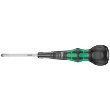 Destornillador con mango Kraftform Serie 1800 para tornillos de ranura en cruz Pozidriv. El mango se adapta de manera excelente a la mano. La forma de bola permite la transmisión de unos pares de giro muy altos. Las zonas blandas de agarre del mango proporcionan una sensación háptica agradable y segura, y además evitan mayores pérdidas en la transmisión de la fuerza. Las zonas duras de agarre permiten una alta transmisión de la fuerza, incluso cuando se ejerce presión con la palma de la mano. Las cavidades de agarre para los dedos que se encuentran en el extremo superior del mango facilitan los ajustes delicados durante los trabajos en uniones atornilladas. Gracias a la zona de unión delgada entre el mango y la varilla, también es posible alcanzar tornillos difícilmente accesibles que se encuentran a profundidad o en entornos de montaje muy estrechos. El sistema antirrodamiento en el extremo superior del útil evita las molestias que pueden ocurrir cuando la herramienta se rueda en el puesto de trabajo. El extremo de la varilla de los destornilladores Wera Lasertip ha sido tratado con rayos Laser para conseguir una rugosidad microscópicamente fina. Esta superficie rugosa prácticamente se aferra fuertemente en la cabeza del tornillo como si tuviera dientes. Así se evita que el útil se desprenda de forma involuntaria deslizándose del tornillo.