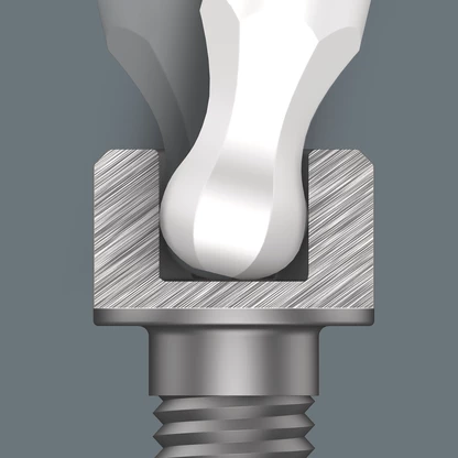 Gracias al extremo esférico, es posible realizar movimientos desplazados del eje de la herramienta con el eje del tornillo, así que prácticamente es posible realizar un atornillado “a la vuelta de la esquina”.