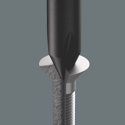 La punta negra tipo Black Point, así como un procedimiento sofisticado de endurecimiento, garantizan una gran longevidad de la punta, mayor protección anticorrosiva, así como un encaje sumamente preciso en el tornillo.