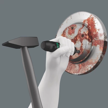 Para aflojar y apretar tornillos simplemente por medio de la fuerza de impacto, sin tener que utilizar máquinas. Los destornilladores de golpe de Wera disponen de un grado de efectividad especialmente alto por su construcción robusta de doble curva. La fuerza de impacto es transformada en un movimiento rotativo. Con esta herramienta no hace falta utilizar aparatos de accionamiento por aire comprimido. La caja de material textil es sumamente robusta y ofrece así una forma muy comacta de alojar esta herramientas tan valiosas.