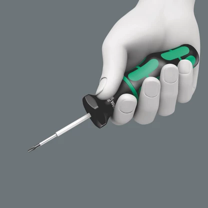 Destornillador dinamométrico de Wera con par de apriete fijo para tornillos de TORX® interior. Protegido contra manipulaciones. Una varilla hexagonal delgada. Un par de desapriete ilimitado para poder soltar tornillos agarrotados. El mango Kraftform multicomponente sirve para un trabajo agradable y ergonómico y previene la formación de ampollas y callosidades. Las zonas duras de agarre garantizan una alta velocidad de trabajo mientras que las zonas blandas de agarre permiten la transmisión de pares de giro mayores.
