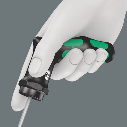 Destornillador dinamométrico de Wera con par de apriete fijo para tornillos de TORX® interior. Protegido contra manipulaciones. Una varilla hexagonal delgada. Un par de desapriete ilimitado para poder soltar tornillos agarrotados. El mango de pistola Kraftform multicomponente sirve para un trabajo agradable y ergonómico y previene la formación de ampollas y callosidades. Las zonas duras de agarre garantizan una alta velocidad de trabajo mientras que las zonas blandas de agarre permiten la transmisión de pares de giro mayores.