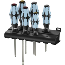 Juego de destornilladores de alta calidad Kraftform Plus de acero inoxidable de Wera. Las herramientas de acero inoxidable de Wera se elaboran con ayuda del método de endurecimiento de congelación al vacío y disponen así de los valores de dureza y resistencia que se necesitan para uniones atornilladas. La aplicación industrial es posible sin ninguna clase de limitaciones. En su mayor parte llevan Lasertip: la punta se aferra fuertemente a la cabeza del tornillo y evita así que el útil se desprenda del tornillo por deslizamiento. El mango es tipo Kraftform multicomponente para un trabajo agradable y ergonómico. Sistema de búsqueda de herramienta "Take it easy" con marcas de color según perfiles y marcado del tamaño - para encontrar la herramienta precisa de forma más fácil y rápida. El sistema de protección contra el rodamiento evita las molestias que conlleva el perder la herramienta que se rueda en el puesto de trabajo. Incluye la bandeja práctica para depositar los destornilladores de forma sistemática.