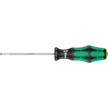 Destornillador Kraftform Plus de alta calidad con varilla para electricistas. Mango multicomponente Kraftform Plus para un trabajo ergonómico y agradable que evita ampollas y callosidades en la mano. Las zonas duras de agarre permiten altas velocidades de trabajo mientras que las zonas blandas garantizan una alta transmisión de la fuerza. El sistema de búsqueda de herramientas Take it easy con sus marcas a color y sus sellos según el tamaño, permite encontrar la herramienta precisa de forma fácil y rápida. El sistema antirrodamiento evita las molestias que se producen si la herramienta se rueda en el puesto de trabajo.