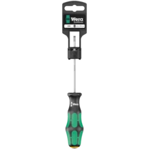 Destornillador Kraftform Plus de alta calidad con varilla para electricistas. Mango multicomponente Kraftform Plus para un trabajo ergonómico y agradable que evita ampollas y callosidades en la mano. Las zonas duras de agarre permiten altas velocidades de trabajo mientras que las zonas blandas garantizan una alta transmisión de la fuerza. El sistema de búsqueda de herramientas Take it easy con sus marcas a color y sus sellos según el tamaño, permite encontrar la herramienta precisa de forma fácil y rápida. El sistema antirrodamiento evita las molestias que se producen si la herramienta se rueda en el puesto de trabajo.