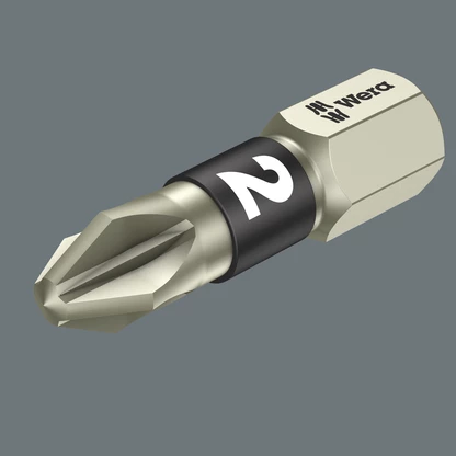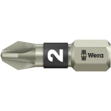 Puntas de alta calidad de acero inoxidable para tornillos tipo Pozidriv*. Las herramientas de acero inoxidable de Wera se elaboran de acero inoxidable, y así se evita la formación de la herrumbre de origen externo que tiene un aspecto tan desagradable. Con zona de torsión: en el caso de las puntas de torsión, los picos del par de giro son amortiguados dentro de la zona de torsión. Así se evita un desgaste prematuro y se aumenta la longevidad de la punta. Hexagonal de 1/4", adecuado para porta-puntas según la norma DIN ISO 1173-D 6,3. *Pozidriv = marca registrada de la empresa European Industrial Service Ltd.