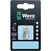 Puntas de alta calidad de acero inoxidable para tornillos tipo Pozidriv*. Las herramientas de acero inoxidable de Wera se elaboran de acero inoxidable, y así se evita la formación de la herrumbre de origen externo que tiene un aspecto tan desagradable. Con zona de torsión: en el caso de las puntas de torsión, los picos del par de giro son amortiguados dentro de la zona de torsión. Así se evita un desgaste prematuro y se aumenta la longevidad de la punta. Hexagonal de 1/4", adecuado para porta-puntas según la norma DIN ISO 1173-D 6,3. *Pozidriv = marca registrada de la empresa European Industrial Service Ltd.