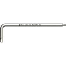 Llave acodada de acero inoxidable de alta calidad para tornillos de hexágono interior de pulgadas de Wera. El acero inoxidable evita el contagio con la herrumbre de origen externo. El perfil Hex-Plus ofrece mayores superficies de apoyo dentro de la cabeza del tornillo. Así se reduce a un mínimo el efecto de entalladura y la destrucción de la cabeza del tornillo se evita casi por completo. Con cabeza de bola de perfil hexagonal en el brazo largo: gracias a los perfiles esféricos de salida es posible desviar o girar el eje de la herramienta hacia el eje del tornillo. De esta forma se pueden realizar trabajos de atornillar "doblando la esquina".