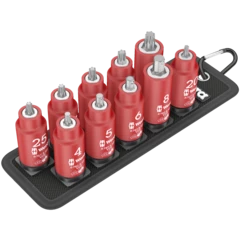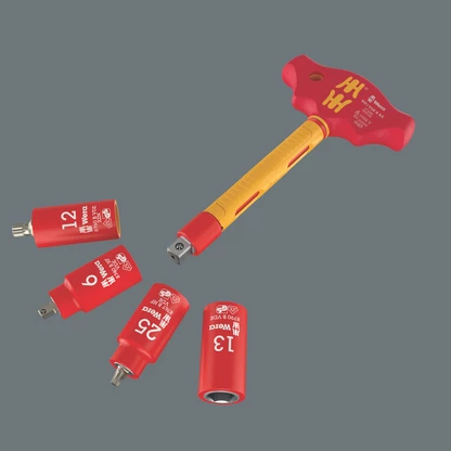 El destornillador de adaptación de aislamiento VDE de mango en T 410 i VDE B RA solo se ha de utilizar con los vasos de punta y las llaves de vaso VDE de 3/8“ de las series de Wera Zyklop VDE 8740, 8760, 8767 y 8790.