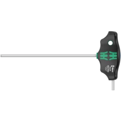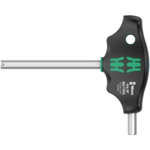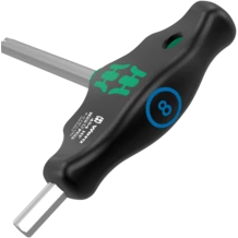 Destornillador de mango en T: la forma ideal del mango permite la transmisión de pares de apriete y desapriete especialmente altos. La forma ergonómica del mango rellena toda la palma de la mano, los dedos se encuentran ubicados de manera segura en las cavidades suavemente redondeadas del mango. Así toda la mano entra en contacto con el mango y se evitan las pérdidas por fricción entre mano y mango. Con función de sujeción para un sostenimiento seguro del tornillo de hexágono interior en la herramienta. La bonificación especial de la superficie del útil ofrece una alta protección anticorrosiva y una exactitud de encaje óptima del tornillo.