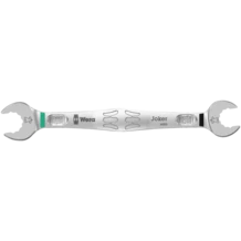 Por el hecho de que los espacios de montaje son cada vez más estrechos, es necesario disponer de herramientas con las cuales los usuarios puedan trabajar de forma exitosa a pesar del entorno reducido. La estrechez requiere que se tengan puntos adicionales para posicionar la herramienta. ¿Será posible modificar las llaves de boca de tal manera que aumenten las posibilidades de posicionar la herramienta? Gracias a la combinación de las bocas dobladas en 7,5° y la geometría de doble hexágono, se alcanza una duplicación de los puntos de posicionamiento. Al voltear la llave reiteradamente en 180° a lo largo de su eje longitudinal, se dan cuatro posibilidades, y las tuercas, o las cabezas de los tornillos, pueden agarrarse cada 15°. La Joker 6005 con su geometría de boca inteligente, amplía el espectro de uso en espacios estrechos de manera clara. Tras cada vuelta, la Joker 6005 prácticamente encuentra el punto de posicionamiento correspondiente de forma autónoma. Gracias al tratamiento de bonificación de alta calidad que reciben las superficies, se consigue una excelente proteccón anticorrosiva muy duradera. Llevan el sistema de búsqueda de herramientas Take it easy: marcas a color según el tamaño.