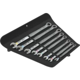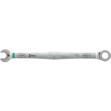 Una combinación genial de extremo de boca y mecanismo de carraca en el extremo del anillo en una versión larga. Para cabezas de tornillos hexagonales o tuercas hexagonales. La palanca larga permite una mayor transmisión de la fuerza. La versión larga también sirve para un acceso más fácil en caso de uniones atornilladas que se encuentran a profundidad. Incluye una función de sujeción gracias a una placa metálica que se encuentra en la boca, que reduce el riesgo de que los tornillos o las tuercas se pierdan durante el trabajo. La placa metálica en la boca es intercambiable y dispone de unos dientes extraduros que sujetan los tornillos y las tuercas de forma segura, y que de esta manera reducen el peligro de un resbalamiento. El tope final integrado es capaz de evitar el deslizamiento de la cabeza del tornillo hacia abajo y permite la aplicación de altos pares de giro. La geometría de doble hexágono conlleva una conexión completa con la forma del tornillo o de la tuerca, y de esta manera se reduce el riesgo de un resbalamiento. El ángulo de retorno mínimo de tan solo 30° al lado de la boca evita que se le tenga que dar la vuelta a la llave al trabajar lo cual normalmente cuesta mucho tiempo. El mecanismo de carraca al lado del anillo dispone de un dentado fino extraordinariamente alto con 80 dientes para una mayor flexibilidad incluso en espacios de montaje muy estrechos. La geometría de forja especial permite la transmisión de altos pares de giro y una rigidez torsional alta. La herramienta está hecha de un acero de alto rendimiento de cromo-molibdeno con un recubrimiento de níquel-cromo para una excelente protección anticorrosiva. Lleva el sistema de búsqueda de herramientas Take it easy: con marcas a color según el tamaño, y además con unas indicaciones del tamaño grabadas a láser.