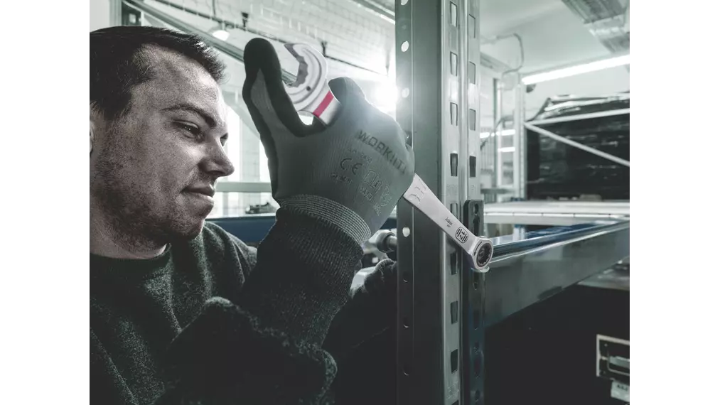 Una combinación mundialmente única de los mecanismos de carracas de boca y de anillo en una versión larga. Para cabezas de tornillo o tuercas hexagonales. La palanca larga permite una mayor transmisión de la fuerza. La versión larga además también permite un mejor acceso en el caso de uniones atornilladas que se encuentran a profundidad. Con función de retención por medio de una placa metálica en la boca que reduce el riesgo de que se pierdan tornillos o tuercas. Gracias a sus dientes extra-duros, esta placa metálica intercambiable que se ubica en la boca, asegura los tornillos y las tuercas, y reduce el peligro de resbalamiento. El tope final integrado es capaz de evitar el resbalamiento de la cabeza del tornillo hacia abajo y permite que se apliquen altos pares de giro. La geometría de doble hexágono proporciona una conexión muy unida con el tornillo o con la tuerca, y reduce así el riesgo de deslizamiento. Un ángulo de retorno de tan solo 30° al lado de la boca evita que sea necesario darle la vuelta a la llave constantemente al atornillar, lo que ahorra mucho tiempo. Gracias al dentado extremamente fino con sus 80 dientes, el mecanismo de carraca al lado del anillo permite una gran flexibilidad en espacios de montaje muy estrechos. La geometría de forja especial permite altas transmisiones del par de giro así como una gran rigidez torsional. Los útiles han sido fabricados de acero de cromo-molibdeno de alto rendimiento con una capa de níquel-cromo que proporciona una alta protección anticorrosiva. Llevan el sistema de búsqueda de herramientas Take it easy: marcas a color según el tamaño con sellos de tamaño adicionales grabados a láser.