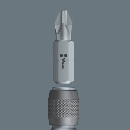 Para una conexión fija, libre de movimientos, entre el porta-puntas y la punta, que se puede volver a soltar de manera rápida. Simplemente desplazar el manguito hacia adelante y cambiar la punta. En versión no-magnética para evitar una atracción indeseada de partículas de metal.