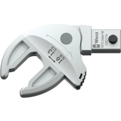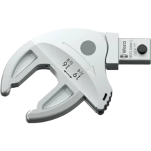 Llave de boca de inserción autoajustante, para cabezas de tornillos o tuercas hexagonales, para llaves dinamométricas de la serie Click-Torque X y XP con toma de 9x12 mm. Cubre todos los tamaños métricos y en pulgadas en el área de aplicación correspondiente. Gracias a las mordazas de guía paralela y continua se sustituyen varios tamaños individuales de llaves de boca. La llave encuentra el tamaño necesario de manera autónoma al colocarse en la tuerca o el tornillo, sin necesidad de ajuste alguno. El mecanismo de palanca integrado aprisiona el tornillo o la tuerca hexagonal de forma segura entre las mordazas lo cual reduce claramente el peligro de un resbalamiento y de los daños que esto puede producir. La función de carraca permite un trabajo de atornillar rápido y sin interrupciones. Gracias a la utilización de los ángulos prismáticos se puede realizar un ángulo de retorno de tan solo 30°.