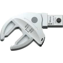 Llave de boca de inserción autoajustante, para cabezas de tornillos o tuercas hexagonales, para llaves dinamométricas de la serie Click-Torque X y XP con toma de 9x12 mm. Cubre todos los tamaños métricos y en pulgadas en el área de aplicación correspondiente. Gracias a las mordazas de guía paralela y continua se sustituyen varios tamaños individuales de llaves de boca. La llave encuentra el tamaño necesario de manera autónoma al colocarse en la tuerca o el tornillo, sin necesidad de ajuste alguno. El mecanismo de palanca integrado aprisiona el tornillo o la tuerca hexagonal de forma segura entre las mordazas lo cual reduce claramente el peligro de un resbalamiento y de los daños que esto puede producir. La función de carraca permite un trabajo de atornillar rápido y sin interrupciones. Gracias a la utilización de los ángulos prismáticos se puede realizar un ángulo de retorno de tan solo 30°.