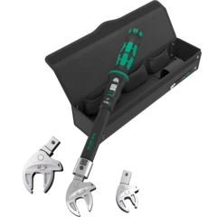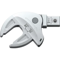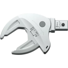 Llave de boca de inserción autoajustante, para cabezas de tornillos o tuercas hexagonales, para llaves dinamométricas de la serie Click-Torque X y XP con toma de 14x18 mm. Cubre todos los tamaños métricos y en pulgadas en el área de aplicación correspondiente. Gracias a las mordazas de guía paralela y continua se sustituyen varios tamaños individuales de llaves de boca. La llave encuentra el tamaño necesario de manera autónoma al colocarse en la tuerca o el tornillo, sin necesidad de ajuste alguno. El mecanismo de palanca integrado aprisiona el tornillo o la tuerca hexagonal de forma segura entre las mordazas lo cual reduce claramente el peligro de un resbalamiento y de los daños que esto puede producir. La función de carraca permite un trabajo de atornillar rápido y sin interrupciones. Gracias a la utilización de los ángulos prismáticos se puede realizar un ángulo de retorno de tan solo 30°.