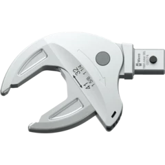Llave de boca de inserción autoajustante, para cabezas de tornillos o tuercas hexagonales, para llaves dinamométricas de la serie Click-Torque X y XP con toma de 14x18 mm. Cubre todos los tamaños métricos y en pulgadas en el área de aplicación correspondiente. Gracias a las mordazas de guía paralela y continua se sustituyen varios tamaños individuales de llaves de boca. La llave encuentra el tamaño necesario de manera autónoma al colocarse en la tuerca o el tornillo, sin necesidad de ajuste alguno. El mecanismo de palanca integrado aprisiona el tornillo o la tuerca hexagonal de forma segura entre las mordazas lo cual reduce claramente el peligro de un resbalamiento y de los daños que esto puede producir. La función de carraca permite un trabajo de atornillar rápido y sin interrupciones. Gracias a la utilización de los ángulos prismáticos se puede realizar un ángulo de retorno de tan solo 30°.