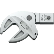 Llave de boca de inserción autoajustante, para cabezas de tornillos o tuercas hexagonales, para llaves dinamométricas de la serie Click-Torque X y XP con toma de 14x18 mm. Cubre todos los tamaños métricos y en pulgadas en el área de aplicación correspondiente. Gracias a las mordazas de guía paralela y continua se sustituyen varios tamaños individuales de llaves de boca. La llave encuentra el tamaño necesario de manera autónoma al colocarse en la tuerca o el tornillo, sin necesidad de ajuste alguno. El mecanismo de palanca integrado aprisiona el tornillo o la tuerca hexagonal de forma segura entre las mordazas lo cual reduce claramente el peligro de un resbalamiento y de los daños que esto puede producir. La función de carraca permite un trabajo de atornillar rápido y sin interrupciones. Gracias a la utilización de los ángulos prismáticos se puede realizar un ángulo de retorno de tan solo 30°.