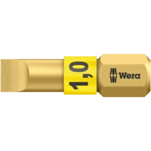 Puntas para tornillos de ranura con unas partículas diminutas de diamante en el extremo de la punta. Éstas proporcionan un posicionamiento seguro dentro del tornillo, reducen la fuerza de presión necesaria y disminuyen el riesgo del resbalamiento. Con una zona de torsión a la cual se deriva energía cinética en el caso de picos de carga. De esta forma se consigue un aumento significativo de la vida útil del producto. Hexagonal de 1/4", adecuado para porta-puntas según la norma DIN ISO 1173-D 6,3.