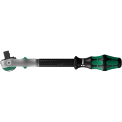 Las carracas Zyklop Speed son unos verdaderos milagros en rapidez: La construcción de masa de inercia permite una aceleración del proceso de atornillado. La construcción de simetría rotativa del mango tipo Kraftform, así como el manguito de giro libre, apoyan el movimiento rotativo extremamente veloz, especialmente cuando durante el atornillado no hay apenas resistencia en la rosca.