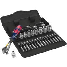 Una configuración del juego increíblemente compacta que ofrece muchísima herramienta en muy poco espacio. Se obtiene una sensación completamente nueva con relación a esta clase de juegos de carraca gracias, a las novedosas cajas de material textil sumamente robustas y duraderas que además se pueden posicionar de forma vertical para conseguir un mayor orden en la estantería del taller. El material exterior textil de la caja ofrece además una protección adicional de las superficies. Peso y volumen son mínimos lo que facilita la movilidad para el usuario.