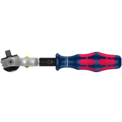 La cabeza de la carraca gira libremente y se puede bloquear en cualquier posición por medio de los pestillos deslizantes que se encuentran a ambos lados. Es posible realizar trabajos con gran libertad de manos sin problema alguno, incluso en situaciones de montaje muy estrechas o difícilmente accesibles. La fijación definida en 0°, 15° y 90° hacia la izquierda y la derecha, garantiza un trabajo seguro sin que se mueva la cabeza de la carraca.