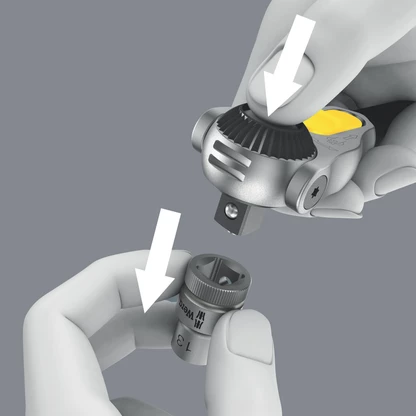 El bloqueo por bola hace que los vasos y los demás accesorios se sostengan de forma segura, lo cual significa que se obtiene una seguridad fiable durante los trabajos en uniones atornilladas.