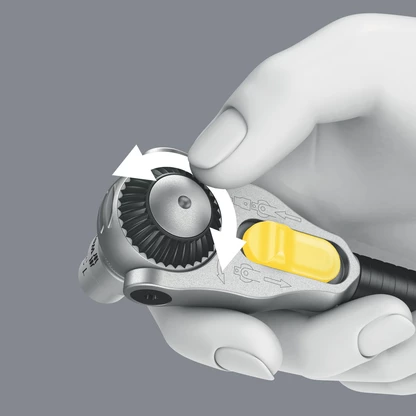 Todas las carracas Zyklop Speed son conmutables en su sentido de giro derecha/izquierda, de forma muy simple y rápida por medio de una moleta, lo que es realizable en cualquier posición. ¡Olvídese de manejos complicados y pérdidas de tiempo!