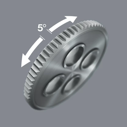 Las carracas reversibles de dentado fino con 72 dientes, disponen de un ángulo de recuperación mínimo de tan sólo 5°. Esta carrera mínima permite realizar un trabajo sumamente rápido y preciso en cualquier posición de montaje.