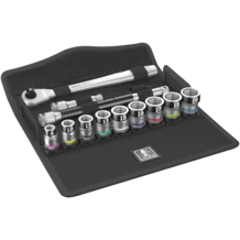 Una configuración del juego increíblemente compacta que ofrece muchísima herramienta en muy poco espacio. Se obtiene una sensación completamente nueva con relación a esta clase de juegos de carraca gracias, a las novedosas cajas de material textil sumamente robustas y duraderas que además se pueden posicionar de forma vertical para conseguir un mayor orden en la estantería del taller. El material exterior textil de la caja ofrece además una protección adicional de las superficies. Peso y volumen son mínimos lo que facilita la movilidad para el usuario. Con sistema de búsqueda de herramienta Take it easy: marcas de color según el tamaño.