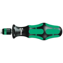 Un porta-puntas manual de alta calidad. El sistema de cambio rápido Rapidaptor permite un cambio ultrarrápido de las puntas sin herramientas adicionales. El potente imán permanente sostiene las puntas de forma extremamente segura. El mango es tipo Kraftform Plus para un trabajo agradable y ergonómico que evita la formación de ampollas y callosidades en las manos. Las zonas duras de agarre sirven para altas velocidades de trabajo mientras que las zonas blandas del mango garantizan una alta transmisión de pares de giro. Adecuado para puntas de hexágono exterior de 1/4" según DIN ISO 1173-C 6,3 y E 6,3 (ISO 1173).