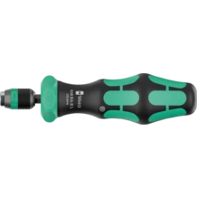 Porta-puntas manual de alta calidad con función de carraca. La carraca que se encuentra integrada en el mango dispone de un dentado fino y permite un trabajo muy veloz. El innovador mecanismo de carraca permite realizar unos movimientos de giro ultrarrápidos en caso de que el tornillo solo ejerza poca resistencia. La conmutación del sentido de giro sucede de forma intuitiva: al girar el conmutador anular hacia la derecha, se atornilla en dirección hacia la derecha, y al girar el conmutador anular hacia la izquierda, se atornilla hacia la izquierda. Para realizar trabajos de precisión, el mecanismo de carraca puede desactivarse por medio de la posición 0. El sistema de porta-puntas Rapidaptor (adecuado para puntas con arrastre hexagonal exterior de 1/4" según DIN ISO 1173-C 6,3 y E 6,3 (ISO 1173)) permite un cambio de las puntas ultrarrápido sin herramientas auxiliares. El fuerte imán permanente garantiza un sostenimiento extraseguro de las puntas. El mango Kraftform está diseñado de forma ergonómica, y evita así que se formen ampollas y callosidades en las manos. Las zonas de agarre de material duro permiten un cambio del agarre rápido sin que la piel de la mano se quede pegada, proporcionando así una alta velocidad de trabajo; las zonas de material más blando permiten un agarre excelente y, de esta forma, una alta transmisión del par de giro.