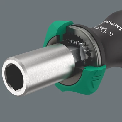 La carraca que viene integrada lleva un dentado fino y permite un trabajo rápido y seguro. El mecanismo de carraca viene integrado de forma completa dentro del mango. El mango es muy compacto en sus dimensiones, lo cual permite un uso de la carraca incluso en situaciones de trabajo y montaje muy estrechas.