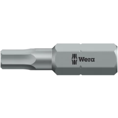 Puntas de Wera resistentes y duras para tornillos de hexágono interior, para aplicaciones universales. El perfil Hex-Plus ofrece mayores superficies de apoyo en la cabeza del tornillo. De esta forma, el efecto de entalladura se reduce a un mínimo, y la destrucción de la cabeza del tornillo se evita casi por completo. En su perfil de arrastre, los tornillos BO de hexágono interior poseen un pivote prominente. De esta manera se evita un desbloqueo imprevisto ya que con herramientas "normales" de hexágonos, no es posible trabajar en estos tornillos. Hexagonal de 1/4", adecuado para porta-puntas según la norma DIN ISO 1173-F 6,3.