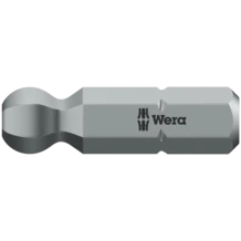 Puntas de Wera resistentes y duras para tornillos de hexágono interior, para el uso universal. Gracias a los perfiles de salida esféricos es posible dirigir o pivotear el eje del útil con relación al eje del tornillo lo cual permite realizar trabajos de atornillar "doblando la esquina". Hexágono de 1/4", adecuado para porta-puntas según la norma DIN ISO 1173-D 6,3.