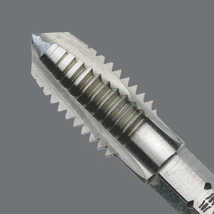 Un juego de 7 piezas de las puntas para el macho de roscar en el bolso plegable robusto 9499. Para el corte de roscas métricas. Gracias al vástago hexagonal de las puntas se consigue una transmisón de la fuerza excelente. La elasticidad del material finamente compaginada, permite una vida útil sumamente larga. La evacuación de las virutas se realiza sin problema alguno, y el riesgo de que la herramienta se bloquee por un ladeo es mínimo. El porta-puntas Rapidaptor permite un cambio de las puntas ultrarrápido sin herramientas auxiliares. Hexágono de 1/4", adecuado para porta-puntas según DIN ISO 1173-D 6,3.