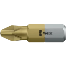 Puntas de alta calidad para tornillos Phillips. Con un recubrimiento extremamente duro de nitruro de titanio (TiN) para que sean capaces de aguantar cargas permanentes como, por ejemplo, atornillamientos de serie. Hexagonal de 1/4", adecuado para porta-puntas según la norma DIN ISO 1173-D 6,3.