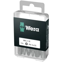 Puntas resistentes y duras de Wera para tornillos Phillips, para el uso universal. Hexágono de 1/4", adecuado para porta-puntas según la norma ISO 1173-D 6,3.