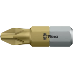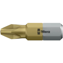 Puntas de alta calidad con un recubrimiento extremamente duro de nitruro de titanio (TiN) para que sean capaces de aguantar cargas permanentes como, por ejemplo, atornillamientos de serie. Hexagonal de 1/4", adecuado para porta-puntas según la norma DIN ISO 1173-D 6,3.