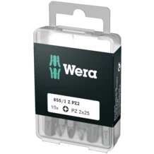 Las puntas duras y resistentes de Wera evitan la rotura prematura del extremo de la salida. Las puntas Z, normalmente son las puntas adecuadas para el caso universal de uniones atornilladas.