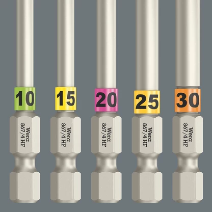 Puntas de alta calidad para tornillos de TORX® interior. La función de retención TORX® HF, desarrollada por Wera (HF = función de retención): las herramientas se caracterizan por una optimización geométrica del perfil original tipo TORX®. Gracias a la fuerza de apriete que resulta de la presión superficial entre el extremo de la salida y el perfil del tornillo, ¡los tornillos se sostienen de forma segura en la herramienta! También son adecuadas para tornillos Würth ASSY así como tornillos Altenloh SPAX T-STAR plus. El sistema de búsqueda de herramientas Take it easy lleva marcas a color según el tamaño. Hexágono de 1/4", adecuado para porta-puntas según la norma DIN ISO 1173-D 6,3.