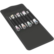 Vaso de punta con arrastre de 3/8" y función de sujeción para un trabajo de atornillar especialmente cómodo y con un riesgo reducido de que se pierda el tornillo al llevarlo hacia la pieza. El sistema de búsqueda rápida de la herramienta Take it easy, con marcas a color según el perfil, permite encontrar la herramienta precisa rápidamente.