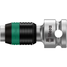 Pieza de conexión de cambio de cuadradillo a hexágono. Para puntas hexagonales de 1/4" según DIN ISO 1173-C 6,3 y E 6,3 y serie de conexión de Wera 1 y 4. Con sistema de cambio rápido.