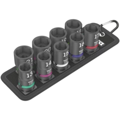 - Para el uso con máquinas atornilladoras de golpe, eléctricas o de aire comprimido, con arrastre de 3/8"